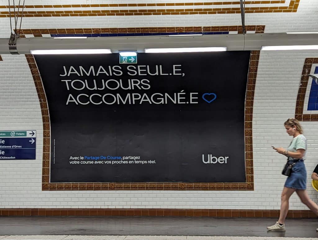 Là, pour la fonctionnalité « partage de course » de Über qui s’adresse évidemment aux femmes qui ont peur de rentrer chez elles seules le soir, mais aussi aux hommes (on pense notamment aux hommes queer, gay ou trans, qui sont plus susceptibles que les hommes cisgenres d’être agressés dans la rue).